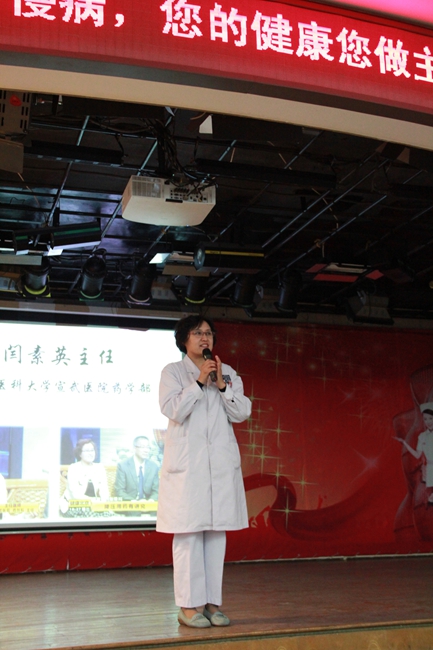 药剂科闫素英主任介绍,药师之友联谊会走过了十一年,是患者认识药师价值,促进医患和谐的平台,我们会继续努力,精心打造宣医药学服务的品牌。此次药师之友联谊会与往届不同,专门请来营养科的专家李缨主任为老年朋友讲述健康饮食。李缨主任讲到人体所需六大类营养素,中国居民膳食指南,饮食与慢性病的关系等内容,老年朋友们非常感兴趣,并积极向专家请教。另外,联谊会上播放了中药房多名药师精心参与制作的正确煎煮中药的视频,通过播放视频,纠正老年朋友以往煎药中的问题,包括选择用什么样的煎煮器具、药物的浸泡时间等。临床药师张青霞讲述高血压与合理用药,讲到高血压的主要危险因素和危害,要坚持健康的生活方式和服用降压药物,需要有长期治疗的理念,要学会血压的自我管理等内容。通过讲解,让老年朋友们要重视疾病,要学会自我管理。