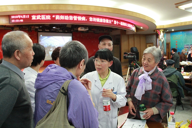 2016年4月1日下午,首都医科大学宣武医院药剂科以“药师助您管慢病,您的健康您做主”为主题的第十一届“药师之友联谊会”在多功能厅顺利召开,药师与50多位老年朋友们欢聚一堂,讲授合理用药知识,交流用药经验,分享就医感受,提出改进建议。